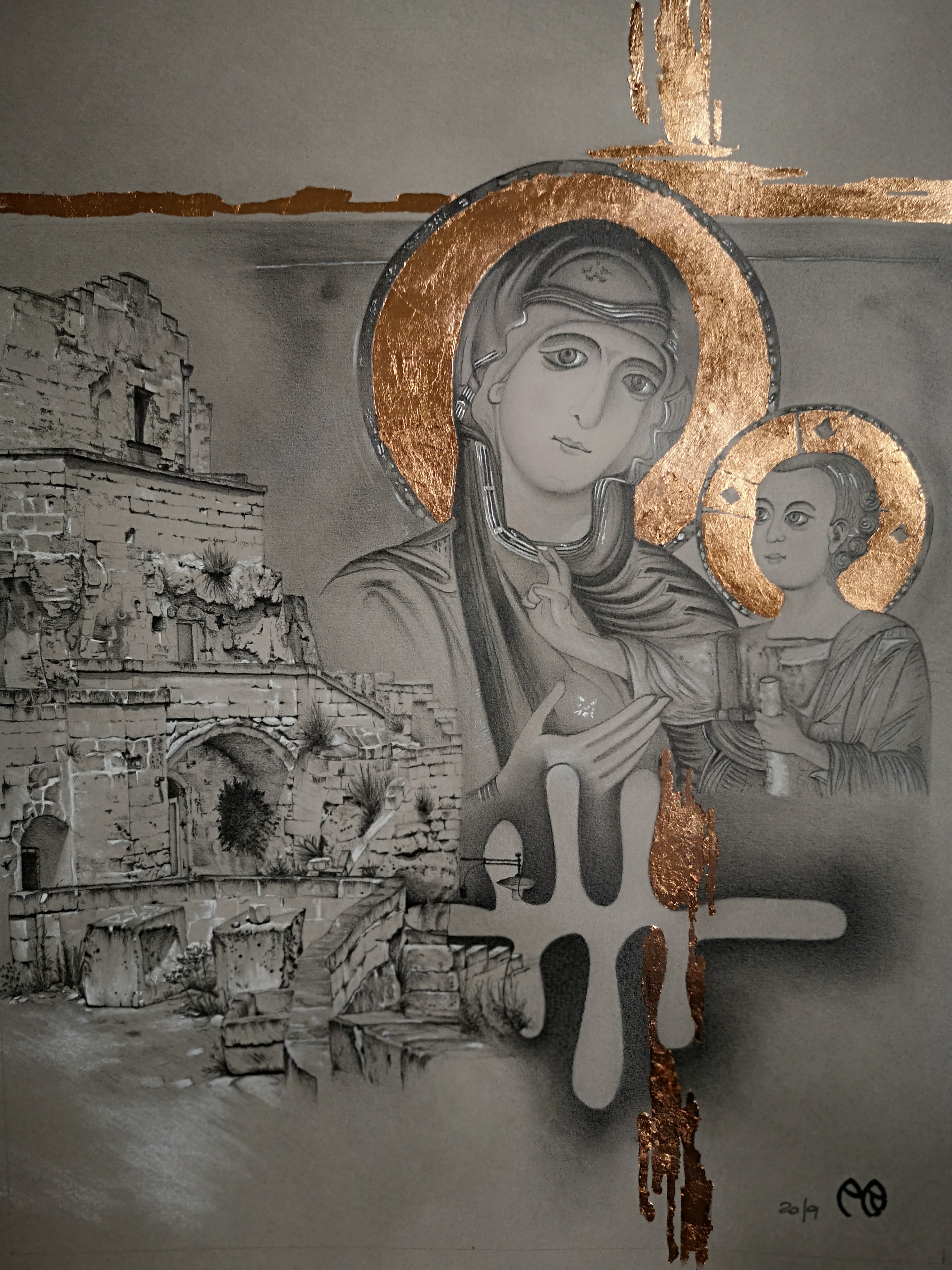 Madonna della Bruna 7 aprile 2020Full resolution (2976 × 3968) Grafite, carboncino nero e bianco, foglia di rame su foglio canson cm. 32x42. Grafite, carboncino nero e bianco, foglia di rame su foglio canson cm. 32×42.